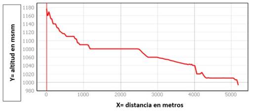 Variación altitudinal: Cuando el valor de la pendiente es alto en la parte superior de la microcuenca hidrográfica El Estero (Figura 2). El sector superior de la microcuenca al presentar mayor pendiente y suelos descubiertos produce mayor erosión de suelos. En la parte media se puede notar que los caudales aumentan durante el periodo lluvioso. Mientras que en la parte inferior se nota que existe alguna falla normal que hace que cerca de su desembocadura la quebrada muestre una caída muy abrupta.