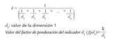En el caso de la ponderación de las dimensiones, K es el valor inverso de la suma de los inversos de los valores de las dimensiones (d) que componen el índice.