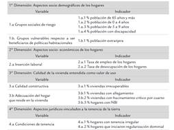 De acuerdo a las distintas fuentes analizadas y desde una perspectiva del derecho a la ciudad, se determinaron 10 dimensiones analíticas de VU, según componentes de vulnerabilidad: