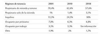 Al analizar lo ocurrido en Tandil, se observa que la ciudad experimentó este mismo proceso en los últimos quince años, coexistiendo un fuerte dinamismo de la actividad de la construcción con una creciente conflictividad social vinculada a las dificultades que encontró una proporción cada vez mayor de la masa trabajadora para acceder a la vivienda digna. Además, se observó un aumento de los tenedores de vivienda inversores, es decir, un incremento de propietarios que adquirieron inmuebles como bienes de cambio, en detrimento de aquellos que lo hicieron para satisfacer una necesidad uso (Auguste y Seffino, 2013). Según datos de los Censos Nacionales, la cantidad de viviendas en Tandil se incrementó en un 22,84% entre 2001 y 2010 (de 41.067 a 50.450 unidades), mientras que la población en ese mismo período creció en un 14,6%. Sin embargo, a pesar del aumento del número de viviendas, los propietarios descendieron de un 70,4% a un 62,6%, mientras que los inquilinos crecieron del 15,5% al 24,5% de la población (INDEC, 2001; 2010). Por su parte, de acuerdo a la Encuesta de Hogares y Empleo Municipal, en el año 2018 los propietarios de las viviendas continuaron descendiendo en Tandil, hasta alcanzar un 57,6%, mientras que los inquilinos treparon al 30% (Tabla 1) (El Eco de Tandil, 21/09/2019).