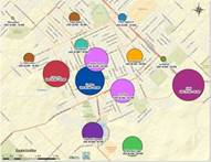 Asimismo, se decidió contrastar esta información obtenida a partir del relevamiento de clasificados en el periódico local con la percepción de los martilleros y los empresarios de la construcción. Para ello se le consultó a los entrevistados cuáles habían sido los lugares más valorizados por las inversiones inmobiliarias luego de la salida de la convertibilidad. En este sentido, a partir de las respuestas obtenidas se evidenció, como lo muestra el Mapa 7, que el centro y varios lugares del sur de la ciudad recibieron la mayor cantidad de menciones. Pero, mientras se destaca que en el centro se generó una valorización del suelo en base a la potencialidad que el medio construido ofrece para la generación de edificios en altura, en el sur, proliferaron los proyectos de espacios residenciales con viviendas unifamiliares para sectores de altos ingresos, debido a sus aptitudes paisajísticas y a la conformación de un mercado correspondiente a la vivienda privilegiada. Esto se tradujo en diferentes formatos residenciales, como barrios parque, urbanizaciones especiales y barrios cerrados, a los cuales también se le adicionaron los emprendimientos destinados a la actividad turística y recreativa, principalmente, hoteles y cabañas.
