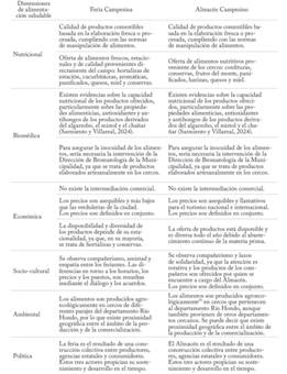 Información comparativa de los circuitos cortos de comercialización con base en las dimensiones de alimentación saludable