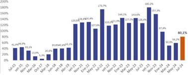 Nota: el gráfico indica la diferencia de precios entre Salto y Concordia en porcentajes, reflejando cuánto más caro es la primera ciudad respecto a la segunda.