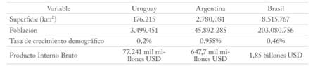 La geopolítica crítica, tal como la plantea Agnew (2005), propone una revisión de las narrativas tradicionales que explican el poder y las relaciones internacionales como productos naturales del orden mundial. En lugar de aceptar mapas y divisiones geográficas como datos objetivos, esta perspectiva examina cómo los discursos geopolíticos —producidos por gobiernos, medios y expertos—, construyen representaciones del mundo que legitiman ciertas políticas y jerarquías de poder. Agnew (2005) subraya la importancia de desnaturalizar esas construcciones, enfocándose en cómo se producen y circulan las ideas sobre el espacio, el territorio y la identidad en contextos específicos. Por tanto, es necesario incorporar en el análisis las estrategias por las cuales las fronteras se aprehenden subjetivamente a partir de prácticas, relatos y vivencias emergentes de la propia acción social; es lo que Newman (1998) denominó imaginación geopolítica. En tal sentido, las definiciones que se hallan en Uruguay están relacionadas con una sostenible inserción del país en la región, considerando su reducida escala socioeconómica, demográfica y territorial en comparación con la de sus países limítrofes Argentina y Brasil (Tabla 1).
