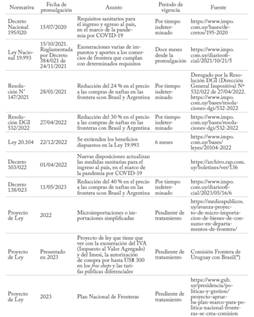 La pandemia y las disparidades de precios entre Uruguay y sus vecinos han impulsado a diversos actores a replantear y proponer estrategias geopolíticas para mitigar estos efectos y desarrollar una estrategia a largo plazo para el país. Entre 2020 y 2023, se promulgaron leyes y decretos ad hoc para abordar los problemas coyunturales, inicialmente enfocados en el tránsito de personas durante la pandemia y, posteriormente, en las consecuencias del comercio fronterizo, especialmente con Argentina. Aunque estas medidas se han implementado, los cambios estructurales han sido limitados.