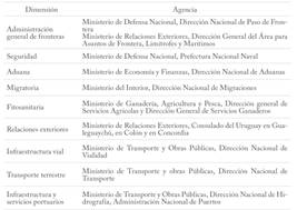 En esta sección se examinan los diversos componentes que delinean la estrategia geopolítica del Uruguay. Mediante dichos instrumentos se procesan y articulan las demandas solidarias y conflictivas que provienen de diferentes actores relacionados con la frontera. Las consideraciones que siguen están centradas en el Estado nacional, pero por la naturaleza de los espacios y las normativas a examinar, no se limitan solo a él. Estas consideraciones integran las preocupaciones y reivindicaciones generales de actores privados y organizaciones de la sociedad civil.