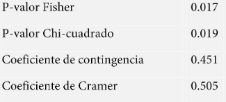 Resumen del análisis de independencia para tabla de frecuencia bivariada para el cumplimiento o no defunciones como auditor vs Experiencia en el desarrollo de trabajos de auditoría.