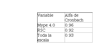 El instrumento general fue tomado de la investigación anual de la Red de Estudios Latinoamericanos en Administración y Negocios (RELAYN) en 2020, quedó conformado con 203 ítems, pero para el presente estudio sólo se consideran 29 ítems correspondientes a la RSC Principios de ISO 26000, RSC Asuntos de ISO 26000, teniendo una escala tipo Likert con 5 puntos de asignación de respuesta, donde 1 significa “No sé/ no aplica”, 2 “Muy en desacuerdo”, 3 “En desacuerdo”, 4 “De acuerdo” y 5 “Muy de acuerdo”; en el caso de la mype 4.0, se consideró una escala tipo Likert con 5 puntos de asignación de respuesta donde el 1 significa “No sé qué es”, 2 “Sé qué es, no sé usarlo y siento que es difícil de aprenderlo”, 3 “Sé qué es, no sé usarlo pero aprendería fácil si lo necesitara”, 4 “Sé qué es, sé usarlo, pero no lo necesito”, 5 “Sé qué es y lo uso”. El cálculo estadístico se llevó a cabo en el programa SPSS.