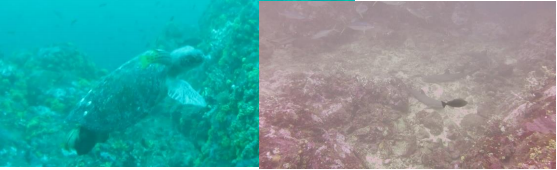 Sitios de descanso y estaciones de limpieza: también se documentó la importancia de los sitios como estaciones de limpieza, donde pequeños peces lábridos (Bodianus diplotaenia) quitaban parásitos del cuello de una tortuga verde y la utilización de los sitios como área de descanso, sobre todo para tiburones puntiblancos (Figura 6).