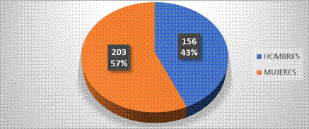 En el área de estudio el 57% fueron mujeres y el 43 % hombres (Fig. 2)