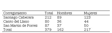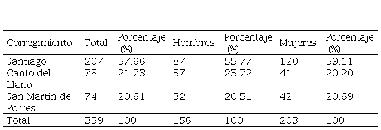 Los datos recolectados en la encuesta fueron capturados en una base de Excel. El procesamiento y la utilización de estadísticas descriptivas fueron realizadas por los investigadores. Con el propósito de obtener una muestra representativa de toda la población bajo estudio, se procedió a una doble estratificación por corregimiento y sexo de la siguiente manera