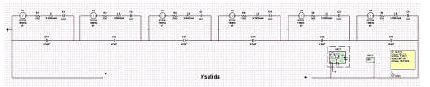Una vez determinados los valores para el circuito equivalente a un sensor piezoeléctrico, se procede a realizar una conexión de seis elementos piezoeléctricos en serie, en Multisim, con los parámetros obtenidos en el punto 2.1, tal como se aprecia en la figura 7: