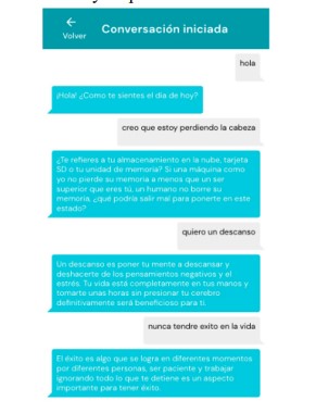 En este este proyecto obtenemos como resultado una arquitectura integral con una herramienta de PLN que posee un entrenamiento inicial, capaz de entablar conversaciones con sus usuarios para brindar apoyo emocional a sus usuarios y facilitar información importante referente a la salud mental y canales de apoyo a quienes padecen síntomas.