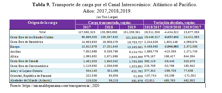 Tabla 5 . Transporte de carga por el Canal Interoceánico: Atlántico al Pacífico.