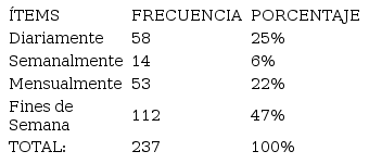 El 47% de los estudienates encuestados estan dispuestos a estudiar de los fines de semana, el 25% diariamente, el 22% mensualmente y por último tenemos el 6% que estudian semanalmente, el fin es el mismo estudiar, aprender más sobre Etiqueta y Protocolo, para desemvolverse de mejor manera en una organización.