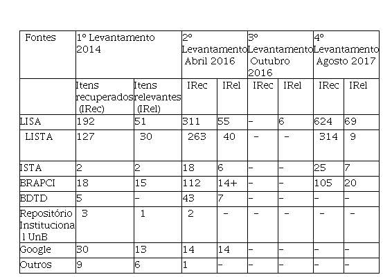 Documentos recuperados e relevantes resultantes dos levantamentos realizados em 2014, 2016 e 2017