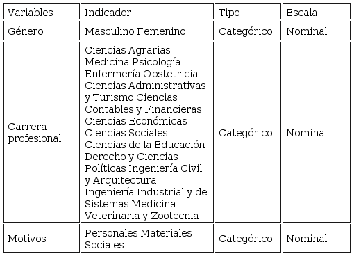 Se aplicó un cuestionario que buscaba encontrar datos sobre aspectos generales de los estudiantes universitarios y acerca de la percepción de motivos de la carrera profesional elegida. También se consideró preguntas sobre la percepción de ocupaciones femeninas y masculinas.