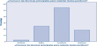 En la figura 1 se presentan los resultados de la pregunta sobre el conocimiento de técnicas para redactar textos jurídicos. Ver gráfico.