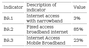To determine the status of use of ICT in MEs, in this research we worked with key indicators on ICT use in enterprises. These indicators have been proposed by the Observatory for the Information Society in Latin America and the Caribbean (OISLAC) [ 8]. The set of 12 evaluated indicators shown in table 1.
