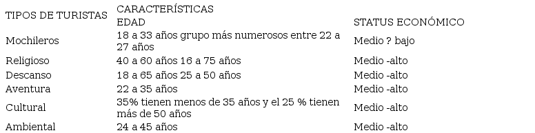 El turismo en las diversas formas de manifestarse depende de un sinnúmero de variables que hacen que los grupos se deban catalogar como en la tabla 1, donde se muestran diferencias que existen entre uno y otro. Es por ello, que el estudio busca determinar las diferencias que puedan existir entre los diversos grupos a partir de nuevos métodos de segmentación.