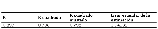 En la tabla 4 se interpreta el resumen del modelo 2, en el cual se obtuvo un R2 ajustado de 0,798, en otras palabras, el modelo está explicado en un 79,8% de la varianza por las variables independientes ingresadas. A continuación, se muestra la ecuación del modelo 2:
