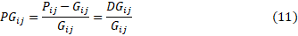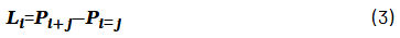 Finalmente, la proporción entre la diferencia (transición observada – transición esperada) y la magnitud del valor de transición observado, tanto para un proceso aleatorio de ganancia como de pérdida, se determina mediante las ecuaciones (11) y (12) respectivamente: