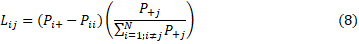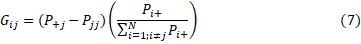 - Transiciones sistemáticas: para la identificación de transiciones sistemáticas en la matriz de tabulación cruzada, es necesario interpretar las transiciones en función del tamaño de las categorías. Así, bajo el supuesto de que, tanto las ganancias como las pérdidas por categoría se mantienen constantes, el porcentaje esperado de transición si las ganancia o pérdida en cada cambio fueran procesos aleatorios, se calcula mediante las ecuaciones (7) y (8) respectivamente.