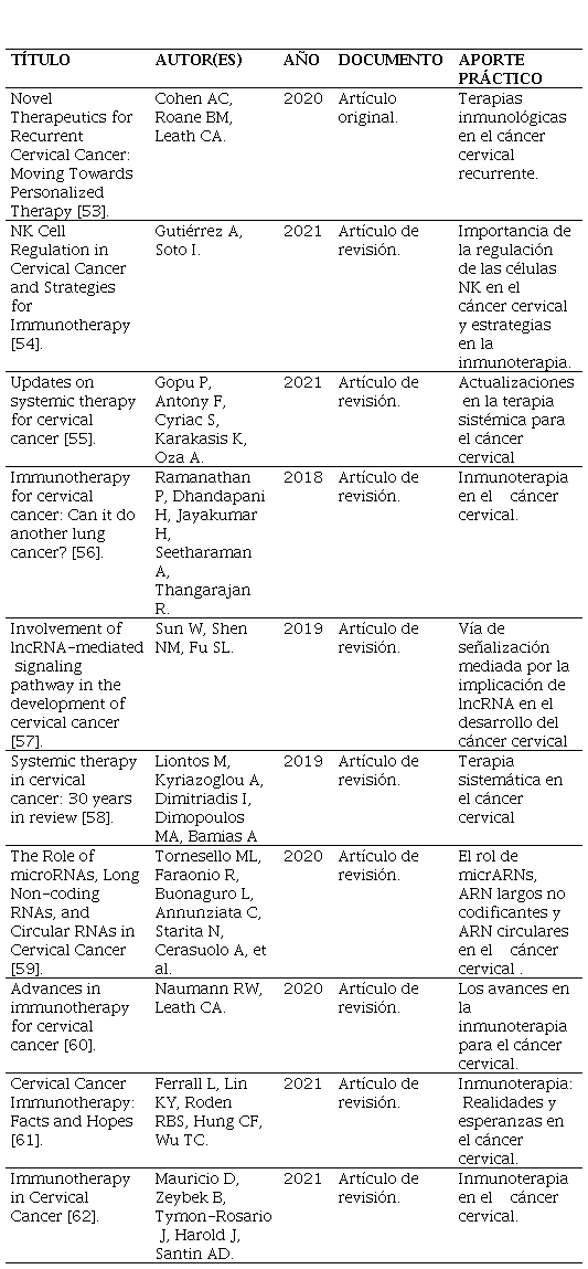 Figura 2. Resultados sobre avances en biomarcadores y terapias dirigidas para el cáncer cervical.
