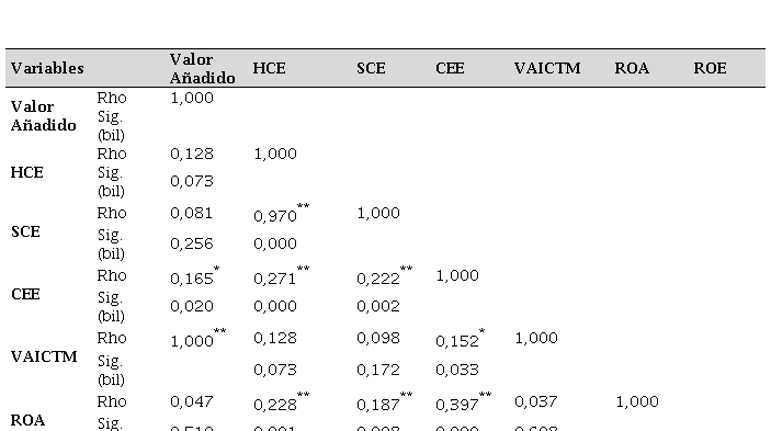 En contraste, el capital humano (HCE) y el capital estructural (SCE) no mostraron correlaciones significativas con los indicadores de rentabilidad, lo que podría deberse a deficiencias en la capacitación del personal, la transferencia del conocimiento o la formalización de procesos internos. La falta de significancia estadística sugiere que, si bien estos componentes son esenciales para la creación de valor a largo plazo, su impacto directo sobre los resultados financieros inmediatos es limitado en el contexto analizado.