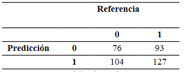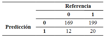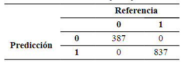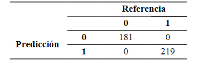 Primeramente, se muestra la matriz de confusión óptima para cada tipo de vino, en las Tablas 12 y 13 se puede apreciar en la correspondiente a la del vino tinto y blanco respectivamente. Es válido aclarar que los pronósticos son para cada fila de la matriz, por ejemplo, en la Tabla 12, que se corresponde con el vino tinto, el método de pronóstico que se emplee debería predecir para los valores positivos (cero) 181 elementos y ningún negativo (uno), en cambio, debería predecir 219 elementos negativos (uno) y ninguno positivo.