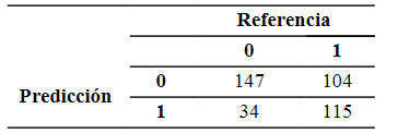 Tal y como ocurrió con la regresión logística los valores de los grupos #1 y #2 son muy parecidos, tanto en la sensibilidad como en los valores de predicción negativos (VP-). En el caso de la especificidad y de los valores de pronósticos positivos (VP+) difieren alrededor del 9% y 14% respectivamente. En el caso del grupo #3 la exactitud aumentó, no de forma significativa, pues sigue siendo bajo si lo comparamos con los grupos #1 y #2, el resto de las medidas son también bajos y no se deben tener en cuenta para hacer una predicción real.