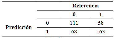 En la Tabla 38 se muestran los resultados al aplicar el método de redes neuronales a los tres grupos de datos. Los valores de exactitud para los tres son altos, de hecho, el valor en el #2 fue de 71.24% que está muy próximo a la exactitud del grupo #1 al aplicar el método de regresión logística. Esto se puede ver en la Tabla 39.