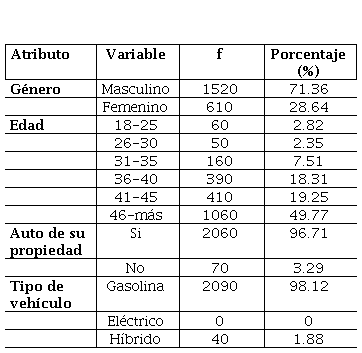 Los datos obtenidos a través de las encuestas a 2,130 conductores del estado de Sinaloa fueron analizados de forma cualitativa utilizando técnicas como el análisis de contenido. Se identificaron patrones, temas emergentes y categorías que permitan comprender la percepción de los conductores sobre los VEs. Del total de personas que participaron en la encuesta 890 eran residentes de Culiacán, 900 de Mazatlán, 120 de Los Mochis, 30 de El Rosario, 20 de Escuinapa y 170 de los otros municipios del estado. Los datos fueron resumidos en la Tabla 3.