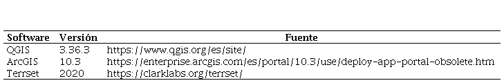 Para realizar el procesamiento de los datos se emplearon diversas herramientas computacionales dedicadas al manejo de datos geoespaciales, las cuales se muestran en la Tabla 2.