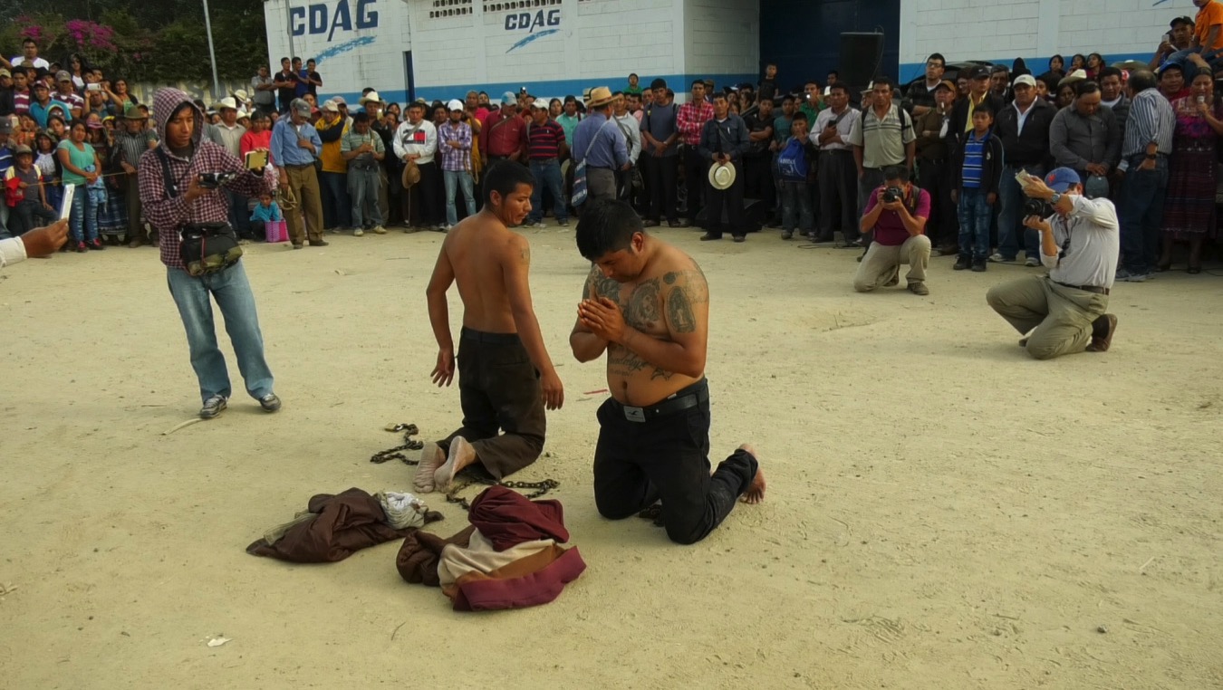 En abril de 2018, recibí un video grabado por la colega maya-kakchiquel Marta Matzir Miculax de la organización Uk’u’x be’, quien ha acompañado a autoridades ancestrales en el altiplano occidental de Guatemala en asuntos de organización, investigación y promoción de prácticas y derechos indígenas en la región. Este material registraba meticulosamente el caso de dos hombres que habían sido enjuiciados por las autoridades indígenas de Santa Cruz del Quiché después de haber sido identificados como los autores del robo del carro de un vecino. Durante el proceso, se reveló que ambos acusados pertenecían a las llamadas maras, pandillas de delincuentes violentos.