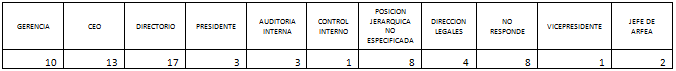 Algo que nos parece relevante destacar es que quienes no responden la pregunta en este caso se autodefinen en diferentes posiciones jerárquicas. Hay una persona que se posiciona dentro del departamento; dos, en el nivel gerencial; una, en mandos medios y cuatro que se autodefinen como empleados. Esto denota un riesgo significativo especialmente en aquellas personas comprometidas con la posición.