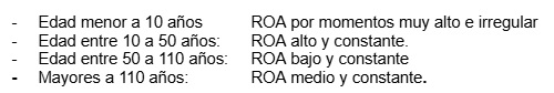 Se distinguen 4 clases de empresas de acuerdo a la evolución de la rentabilidad y la edad: