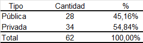 La unidad de análisis estuvo constituida por los perfiles de egreso de la carrera de Contabilidad ofrecida por universidades peruanas licenciadas por la Superintendencia Nacional de Educación Superior Universitaria (SUNEDU). La información fue recolectada de las páginas web institucionales de dichas universidades, constituyendo así tanto la población como la muestra del estudio, la cual estuvo conformada por 62 universidades (28 públicas y 34 privadas), como se presenta en la Tabla 1.