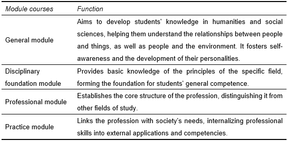 Dividing the modules into subcategories is beneficial because it provides a clearer reflection of the relationship between general education and professional courses. The advantage of this approach is that it enables the integration of different professional fields, making "general education" and "professional education" complementary and mutually reinforcing. The breakdown of subcategories also shows that universities emphasize broadening and integrating knowledge across various fields such as ideological politics, humanities, social sciences, and natural sciences. This structure offers students distinct, expansive, and diverse options.