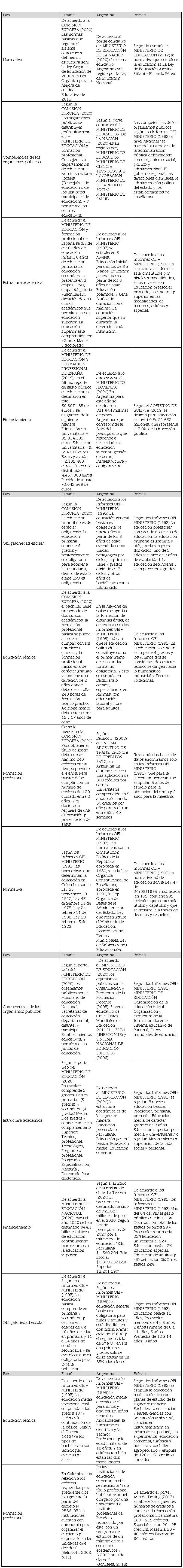 Abstract: This article of documentary review arises from the academic space of trends and challenges from the educational systems of the doctorate Management and Educational Policy at the UNIVERSIDAD DE BAJA CALIFORNIA UBC (Mexico), which aims to carry out a theoretical analysis of the governmental operation of the Ibero-American educational systems, making a comparison of six main characteristics, such as regulations, competencies of public bodies, academic structure, financing, technical education, compulsory schooling, and professional training, in six Latin American countries, deepening it in Colombia. In conclusion, it is undeniable that each state's legislation is different in the functioning of educational systems. Therefore, it is important to articulate educational processes to these legislations so as not to fall into the error of going beyond the legal and committing irreversible social and cultural errors for society and the educational community.