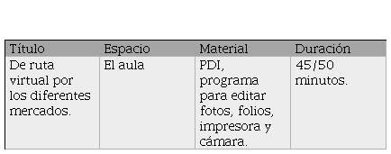 Otra posibilidad para ampliar sus conocimientos y experiencias, es que la maestra grabe un audiovisual de 360º del interior del mercado, para después proyectarlo en el aula, y que tengan la oportunidad de vivir la experiencia del mercado por dentro, así como descubrir cómo es. Aportamos un enlace, como ejemplo, del mercado central de Valencia, España: https://www.youtube.com/watch?v=vKRT2K1gTuc. Esta variable de la actividad sobre la realidad virtual (RV) aporta posibilidades de inmersión visual, a la vez que cognitiva, si no se tiene la oportunidad de realizar una salida extraescolar a un mercado de manera física. Con la situación actual situación sanitaria, producida por la SARC COVID-19, sería un recurso muy interesante para adaptar e implementar en las aulas en un futuro, siempre que no sea posible salir del aula.