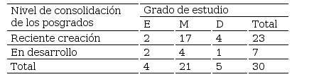 3.1. Grado de estudio y nivel de consolidación de los posgrados de Ingeniería con la industria