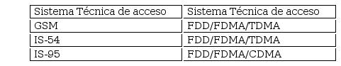 Los sistemas de primera generación utilizaban FDMA, mientras que los sistemas de segunda generación utilizan combinaciones de las diferentes técnicas de acceso: