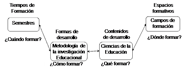 Esta organización de la titulación devela una relación de los tiempos de formación, la lógica científica y los contenidos de las Ciencias de la Educación precisos para que sistemáticamente el estudiante alcance una titulación de calidad. Se revela una relación dialéctica entre el tiempo formativo (semestres), las formas de organizar el aprendizaje (metodología de investigación educacional) y los contenidos para una adecuada titulación (Ciencias de la Educación).