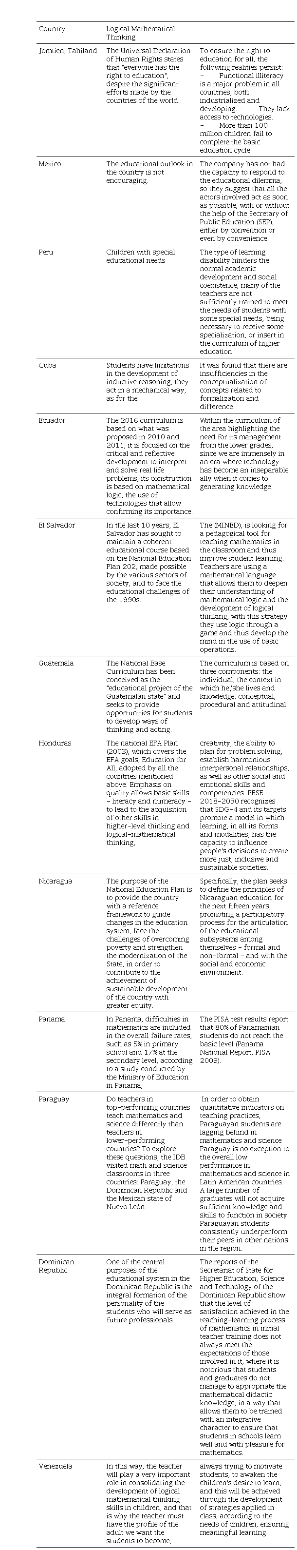 In Guatemala, the CNB base curriculum has responded to a national educational need that seeks to achieve optimal learning, so that people can develop fully and autonomously within society. One of the greatest challenges presented by the curriculum is "[...] to provide opportunities for students to develop scientific ways of thinking and acting" and the development of logical-mathematical thinking contributes to this objective.