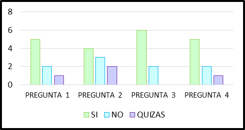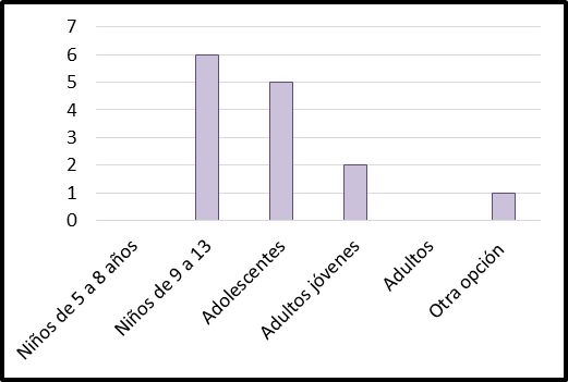En la Figura 6, se muestran los resultados de las primeras 4 preguntas, considerando tres respuestas posibles. La quinta pregunta tuvo 5 opciones posibles en las cuales los usuarios especificaban el rango de edades al que creían que el kit de enseñanza iba enfocado (Figura 7).