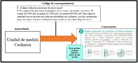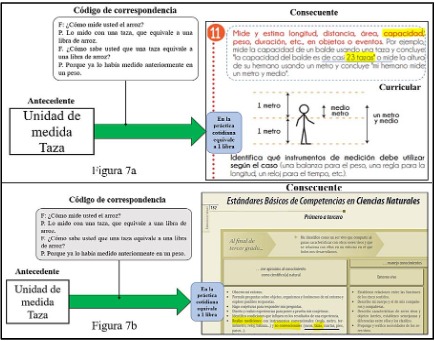 Cabe destacar que, en la Figura 7b se observa la conexión etnomatemática en relación con los estándares básicos de las ciencias naturales (MEN, 2006), lo cual evidencia la transversalidad de las matemáticas en diferentes asignaturas, en este caso el uso de unidades de medidas convencionales y no convencionales.