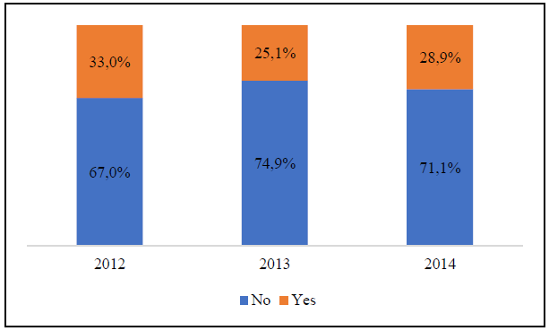 The human resources in manufacturing companies are not highly trained in ICT because only the third part of the manufacturing firms owned the ICT specialists during 2012. In 2014, the percentage decreased to 28.9%. Regarding the gender of the ICT specialist, 67.5% are men and 32.5% are women (2014) (Figure 10).