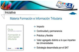 Guatemala. La Superintendencia de Administración Tributaria (SAT) es la entidad encargada en este país del Programa Permanente de Cultura Tributaria. Desde el 2005 se vienen adelantando las actividades de inclusión de cultura tributaria en el programa de estudios del nivel primario, complementada por la distribución de textos escolares y juegos de mesa de educación tributaria. En una estrategia conjunta con el Ministerio de Educación, se está trabajando en la revisión del pensum educativo de los ciclos básicos y en la transformación curricular de la carrera de Perito Contador. También se realizan cursos de capacitación sobre temas tributarios, dirigidos tanto a los contribuyentes como a los Contadores y se desarrollan otras actividades lúdicas como obras de teatro y campañas publicitarias.