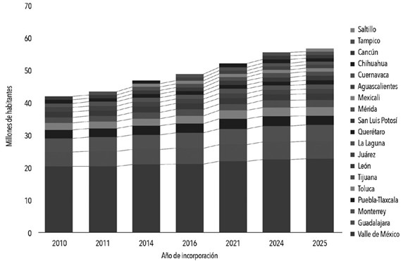 Nota. Adaptado de CONAPO (2010). Proyecciones de la población de los municipios que componen las zonas metropolitanas, 2010-2030. Recuperado a partir de http://www.conapo.gob. mx/es/CONAPO/Zonas_metropolitanas_2010